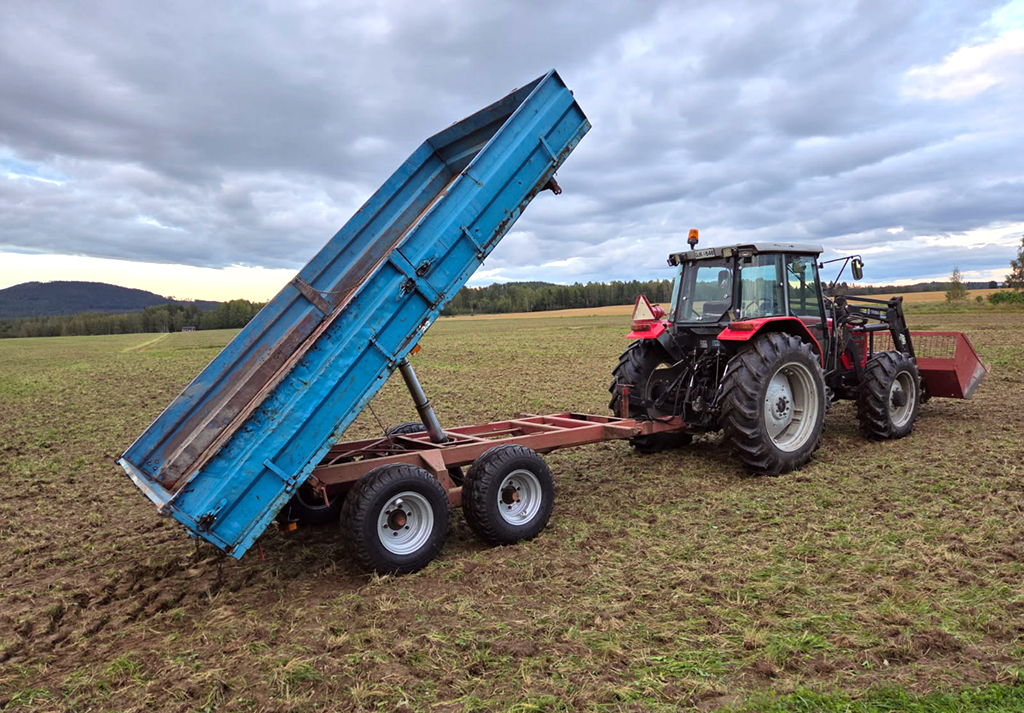 På bilderna är kärran kopplad till Anders fina traktor, en 4x4 Massey Fergusson. En traktor som Alldäck tidigare levererat nya traktordäck till. Vi tackar Anders för att vi fått förtroendet att återigen leverera priseffektiva däck av hög kvalité.