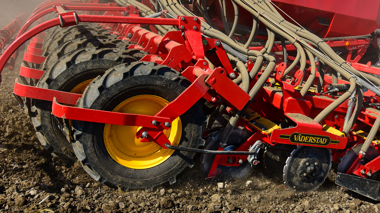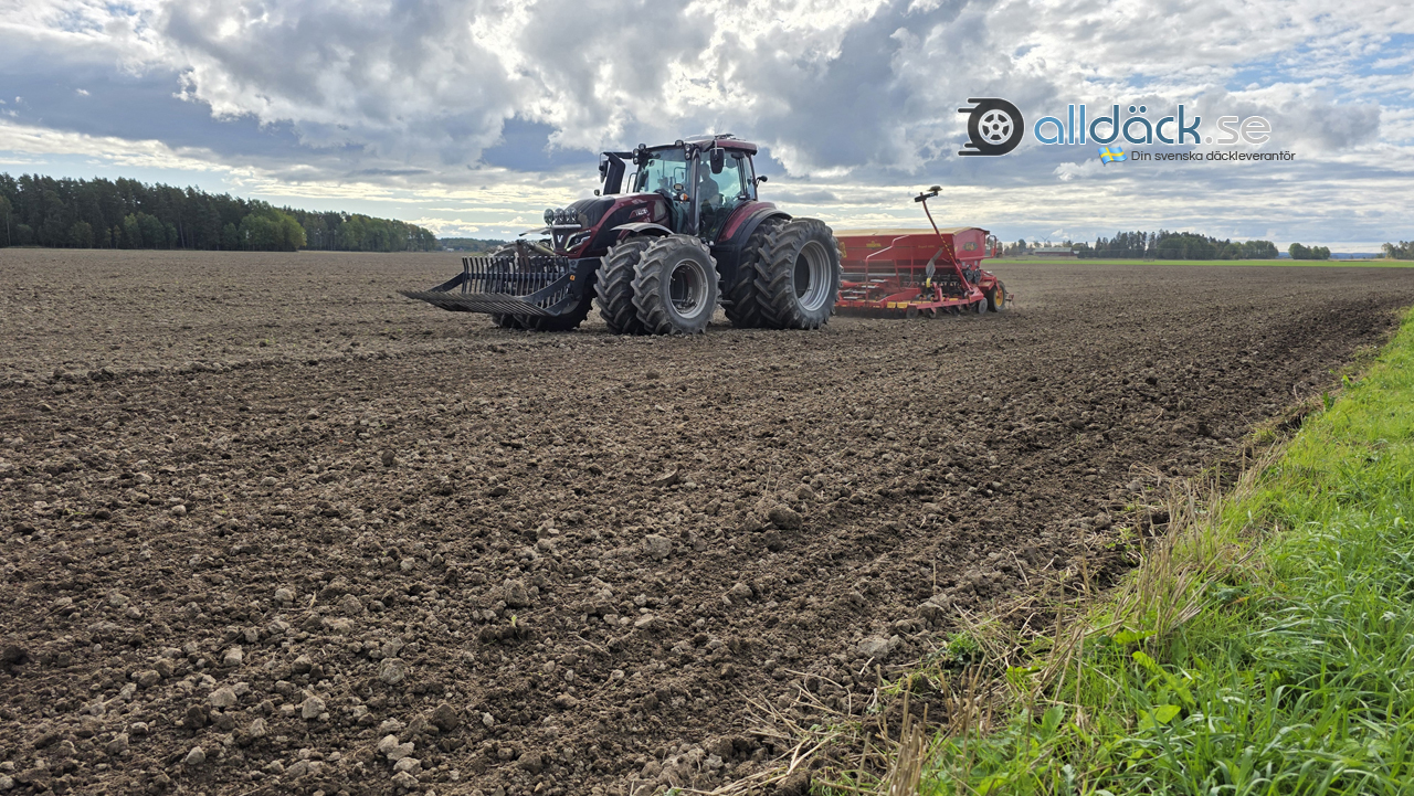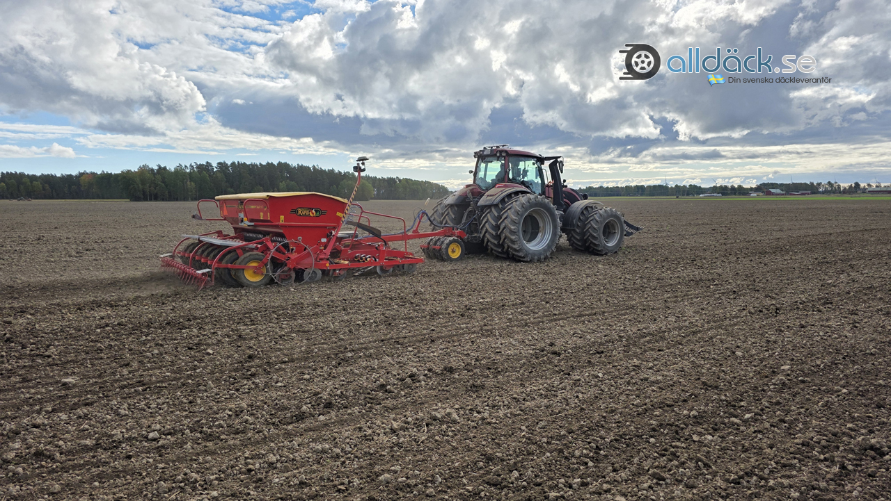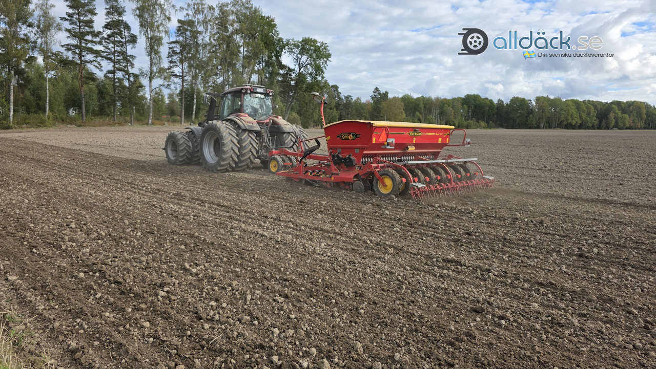 Henrik driver sin gård straxt utanför Örebro i Närke, och använder ny Valtra T235 till sin såmaskin, en Väderstad Rapid. Såmaskinens model är Rapid 400C. Nyligen fick vi i uppdrag att raskt ordna fram två nya däck. Det blev original Väderstad förstärkta däck 190/95-15 102A8 TL (Väderstad artikelnummer: 160011). Nya däck togs hem på dagen och arbetet kunde fortsätta med höstsådden.