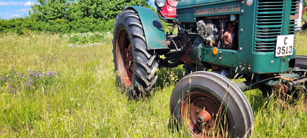 Pelle utanför Örebro har uppgraderat sin gamla Bolinder Munktell BM-36 med nya bakdäck från BKT. Traktorn levererades från Eskilstuna 1954, och vi tror att traktorn levererades ny med traktordäck från GoodYear. Det är sällan dessa gamla bakdäck sitter kvar på veterantraktorer från 50-talet, men ibland har faktiskt framdäcken klarat sig, och är fortfarande i bruk än idag. Mellan åren 1939 och 1982 tillverkades faktiskt Goodyear däck på en fabrik i Norrköping, och på många däck kan man läsa "Made in Sweden". Företagsnamnet var "Goodyear Gummi Fabriks AB" och det var ett dotterbolag till det amerikanska företaget "The Goodyear Tire Rubber Company" som låg i Akron USA. Goodyear har de klassiska rubinerna på sidan av däcket, något som är en omtyckt detalj.