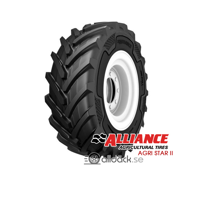 Med AGRI STAR II sätter Alliance en ny standard när det gäller en kombination av kvalité och pris. Det ger dig en bättre ekonomi över tid. Mönstret Agri Star II från Alliace är innovativt med en konstruktion av flera skikt som ger hög dragkraft, bra körkomfort, bättre livslängd, mindre jordkomprimering och bra självrengöring. Dessutom har hastighetsindex ökats till 65 km/h. Däcket har en stratifierad lagerteknologi som kallas SLT, vilket betyder indelning i flera skikt. Skikten består av olika vinklar på klackarna, där det nedersta skiktet har en multivinkelprofil. Detta gör att däcket har bättre körbarhet och prestanda på väg när slitaget når 40% eller mer. För att uppnå den högre slitstyrkan och styvheten har AGRI STAR II en högre volym med gummi.
